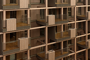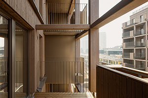 Die reduzierte Gebäudetiefe ermöglicht größere Fassadenanteile pro Einheit, wodurch die Wohnungen großzügiger belichtet werden und flexible Grundrisse mit einem variabel nutzbaren Zusatzraum entstehen. Ein wesentliches architektonisches Element ist die Gestaltung der Balkone als geschützte, begrünbare Außenräume. Sie erweitern die Wohnflächen in den Freiraum und unterstützen das Konzept eines alltagstauglichen, naturnahen Wohnens.