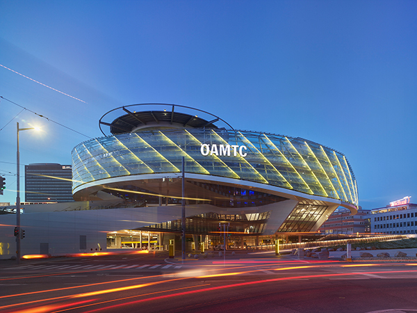 Das neue ÖAMTC Headquarter, in seiner Formensprache der gebaute Ausdruck von Mobilität, gehört zu den spektakulärsten Bauten Wiens der letzten Jahre. Nicht nur die Architektur fasziniert, es ist auch der Nutzungsmix, den dieses Haus auszeichnet: Werkstätte, Kunden- und Beratungszentrum, Shop, Büro, Konferenzen, Notrufdienst, Heliport und vieles mehr. Scheinbar selbstverständlich löst die Architektur diese heterogenen Nutzungen auf und geht dabei neue Wege.